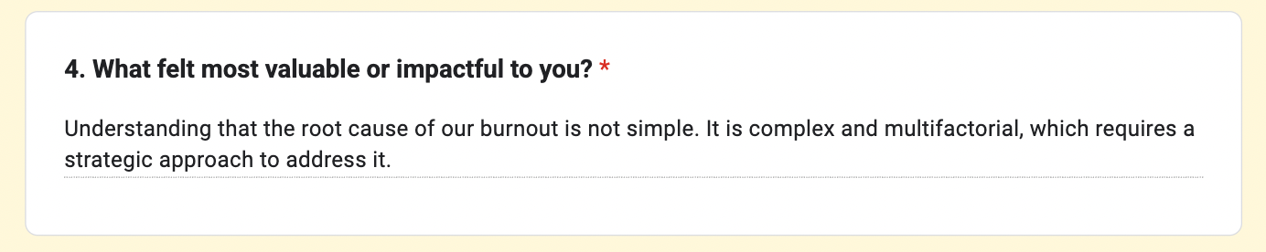 Dr. MH used our frameworks to finally identify the root cause of her burnout, address it, and prevent it from happening again.Â
