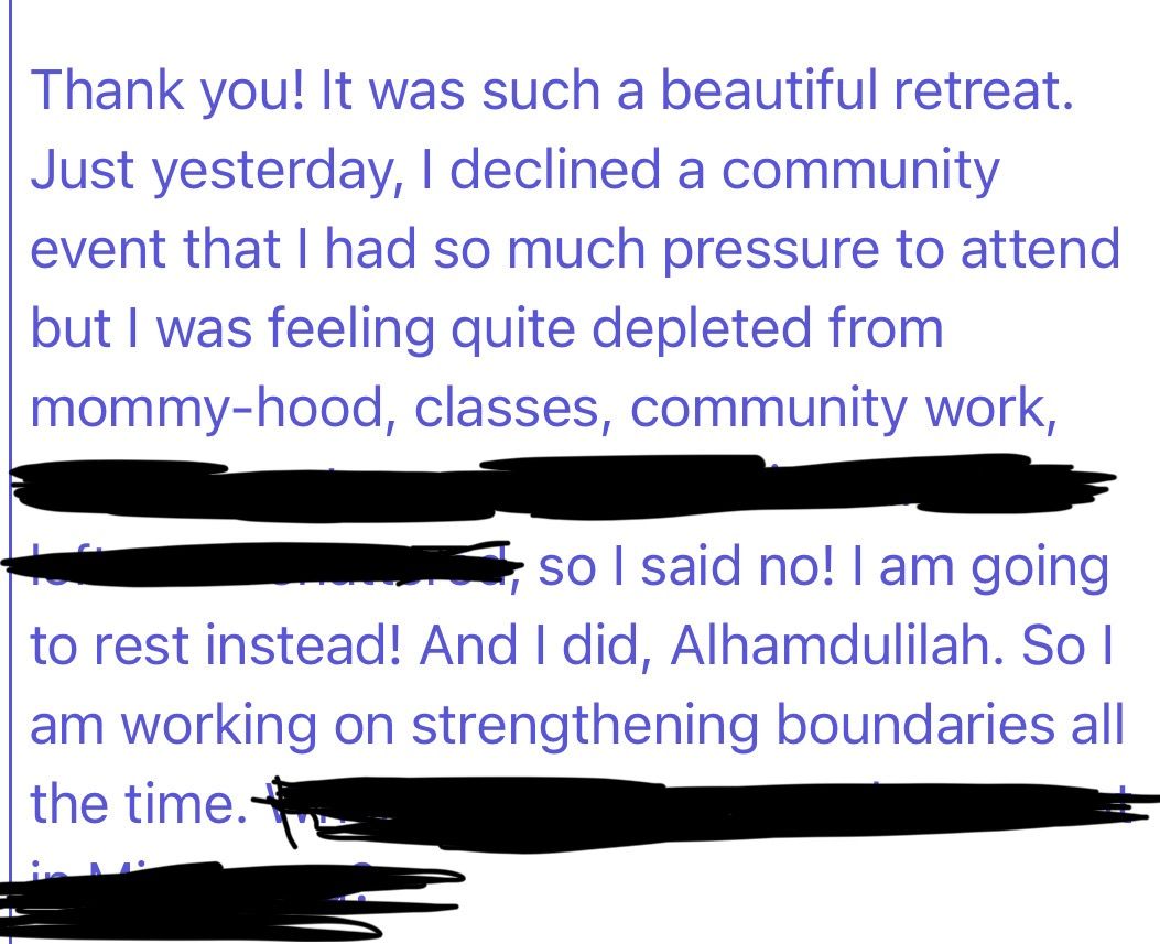 Anisa used our strategy to set firm boundaries, take things off her plate, and finally get the rest and recovery she needed. Â